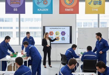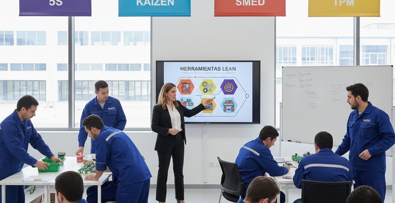 Herramientas Lean: 5S, Kaizen, SMED, TPM.